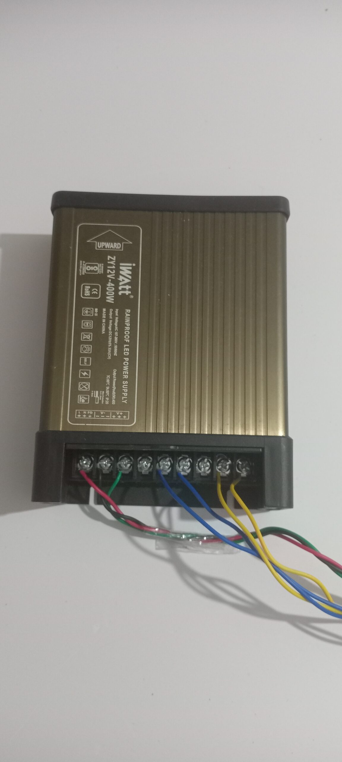IMPORTED HIGH QUALITY POWER SUPPLY, OVER VOLTAGE PROTECTION,OVER CURRENT PROTECTION, SHORT CIRCUIT PROTECTION ,RoHS , ISO9001:2008 APPROVED, 3 INPUT TERMINALS AND 3 OUTPUT TERMINALS, INPUT – AC 187 – 262 V 50HZ ,OUTPUT – 12V DC , 33A , 400W SUITABLE FOR LED LIGHTING, CCTV, OUT DOOR APPLICATIONS